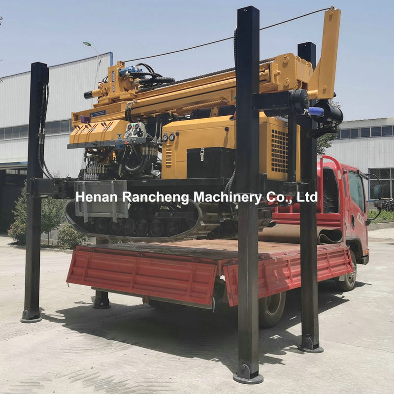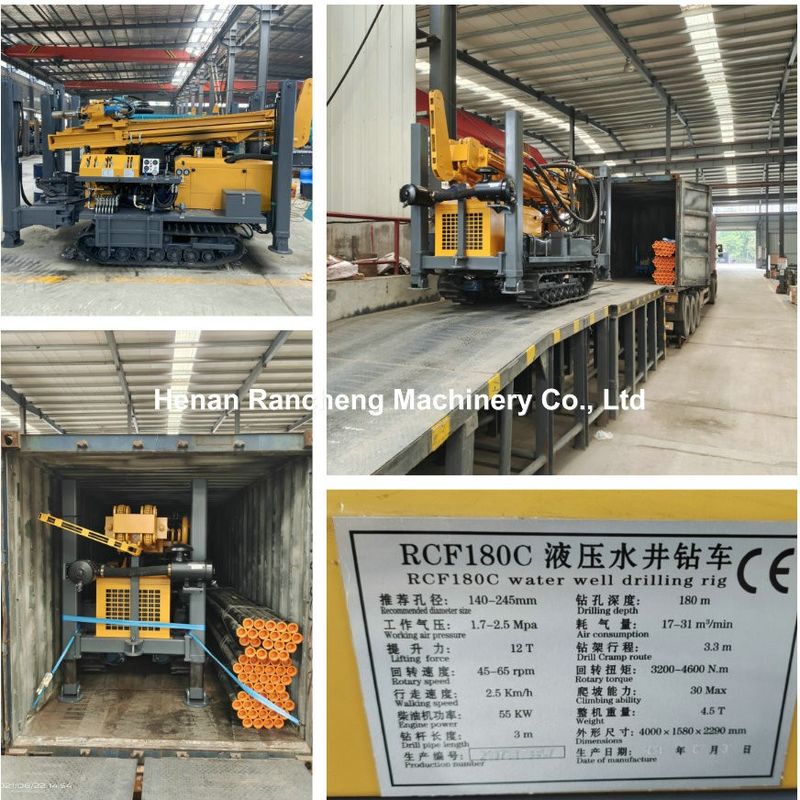 The RCF180C hydraulic drilling rig is a high-performance drilling equipment developed independently. It features a dual-motor rotary drill head design and can be flexibly paired with mud pumps and air compressors. Equipped with a powerful and stable 55 kW diesel engine, and a rubber track-type walking structure, it offers convenient mobility and adaptability to various work sites. It boasts a drilling depth of up to 180 meters and a drilling diameter range of 90-300 millimeters, supporting both mud pump drilling and down-the-hole pneumatic drilling methods. It is widely applicable to various drilling projects, including irrigation wells, domestic drinking water wells, geothermal wells, and industrial wells.